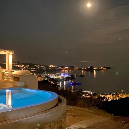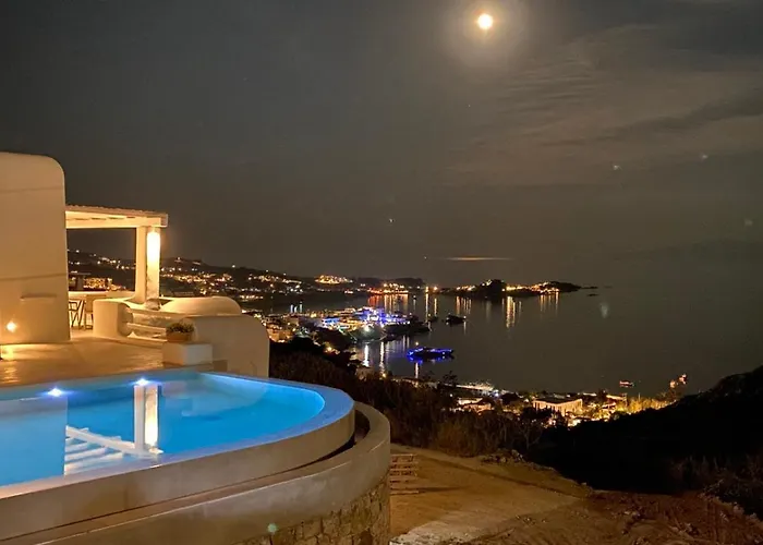 Com banheira quente para uma experiência relaxante, a Villa Camelia 2 - Psarou View - Private Pool And Jacuzzi Mykonos Town está localizada a 2.8 km de Museu Marítimo de Aegean. Localizada a 10 minutos de carro da Rua Matoyianni, esta casa de férias dispõe de serviços de beleza, aulas de ioga e pátio para maior prazer.